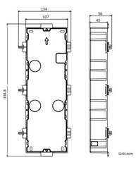 Komplet plastové zápustné instalační krabičky pod omítku a nerezového rámečku pro 3 moduly, možnost instalace více krabiček vedle sebe, rozměry krycího nerezového rámečku 337.8 x 124 x 4 mm, rozměry plastové montážní krabičky 320.8 x 107 x 32.7 mm, určeno pro IP systém i 2-vodičový systém.