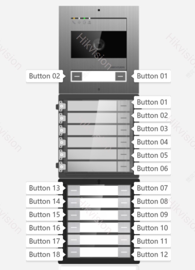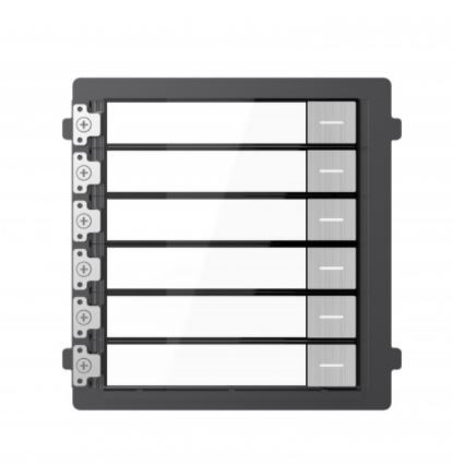Modul se šesti zvonkovými tlačítky a prostornými jmenovkami, nerez, v nočním režimu jsou jmenovky podsvětleny, nevyužité tlačítko je možné zaslepit (balení obsahuje 4 záslepky), rozměry 98 × 100 × 34 mm, určeno pro IP systém i 2-vodičový systém.