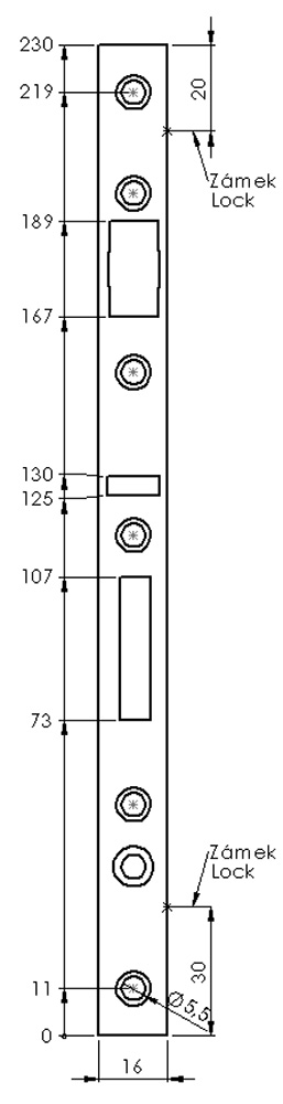 elo zámku určené pro samozamykací zámky ERBI s roztečí 92 mm (řady 9235 a 9245).