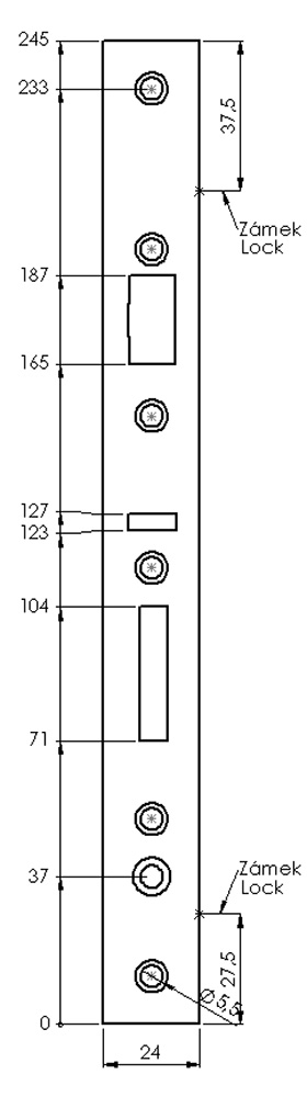 elo zámku určené pro samozamykací zámky ERBI s roztečí 92 mm (řady 9235 a 9245)