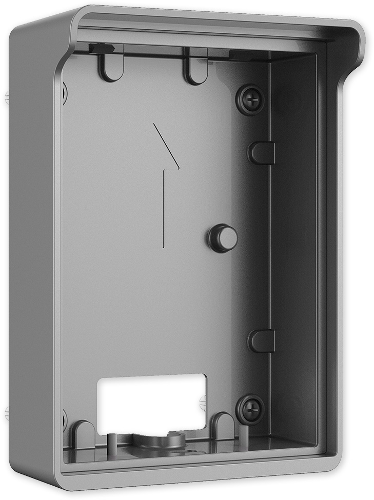 Povrchová instalační krabice se stříškou určená k montáži dveřní jednotky VTO2202F-P. Provedení ze slitiny hliníku ve stříbrné barvě.