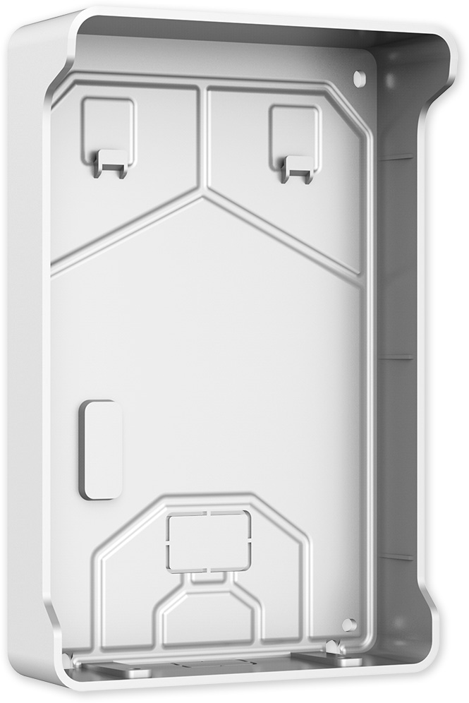 Povrchová instalační krabice se stříškou určená k montáži dveřních jednotek řady VTO2211G. Plastové provedení ve stříbrné barvě.