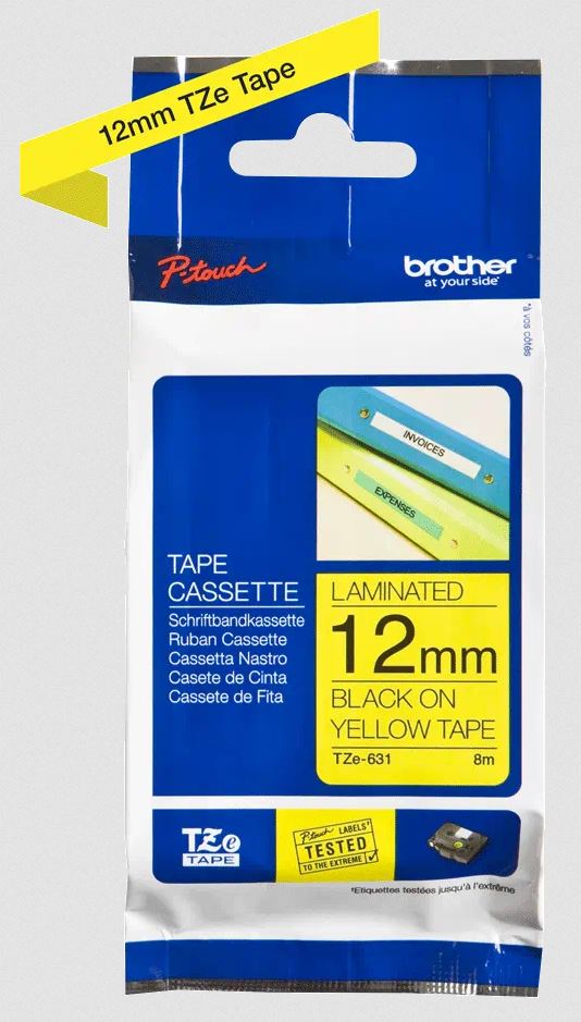 Kazeta TZe-631 s laminovanou páskou s černým tiskem na žlutém podkladu je stejně praktická v domácnosti, kanceláři či pracovišti. Může být použita k identifikaci obsahu šanonů, regálů až po USB flash disky, značení kabeláže a dalších zařízení. Samolepicí laminované štítky z této kazety byly vyvinuty s důrazem na odolnost proti extrémním teplotám, chemikáliím, oděru, slunečnímu záření a působení vody tak, aby byly vhodné pro vnitřní i venkovní použití.