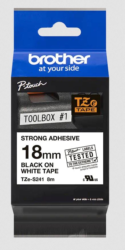 Páska Brother TZe-S241 s černým tiskem na bílém podkladu a extra silným lepidlem je ideální pro značení na hrubých a nerovných površích, jako jsou kovové skříňky nebo texturované plasty. Díky laminované vrstvě odolává vodě, chemikáliím, oděru, UV záření i extrémním teplotám. Měkčí složení lepidla zajišťuje lepší přilnavost a dlouhou životnost štítků i v náročných podmínkách.