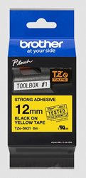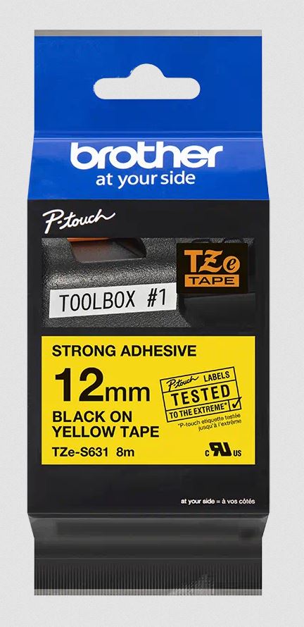 Páska Brother TZe-S631 s černým tiskem na žlutém podkladu a extra silným lepidlem je ideální pro značení na hrubých a nerovných površích, jako jsou kovové skříňky nebo texturované plasty. Díky laminované vrstvě odolává vodě, chemikáliím, oděru, UV záření i extrémním teplotám. Měkčí složení lepidla zajišťuje lepší přilnavost a dlouhou životnost štítků i v náročných podmínkách.