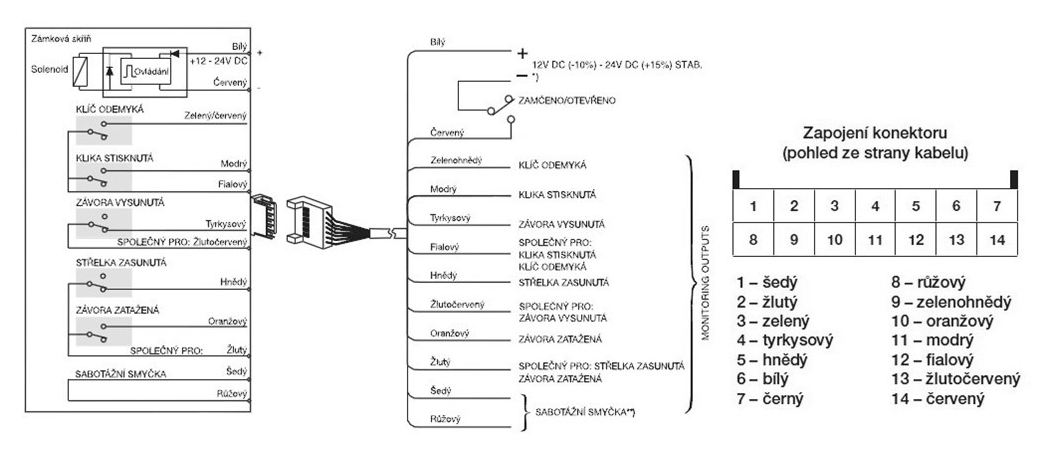 Vlastnosti: monitorovací kontakty (max. 0,5 A 30 V AC/DC resist, 10 W)