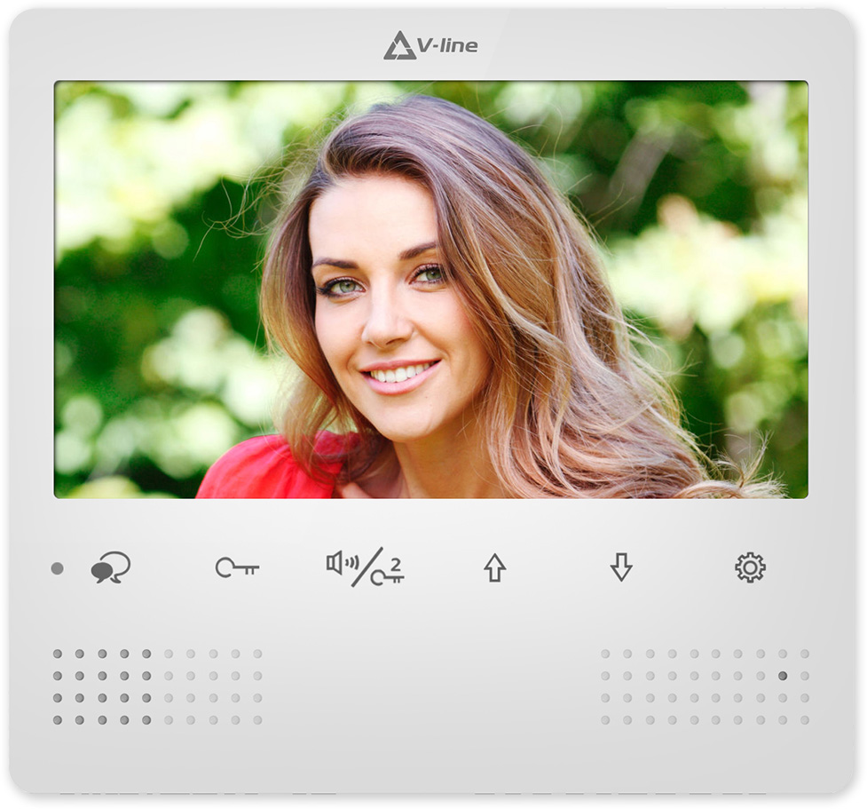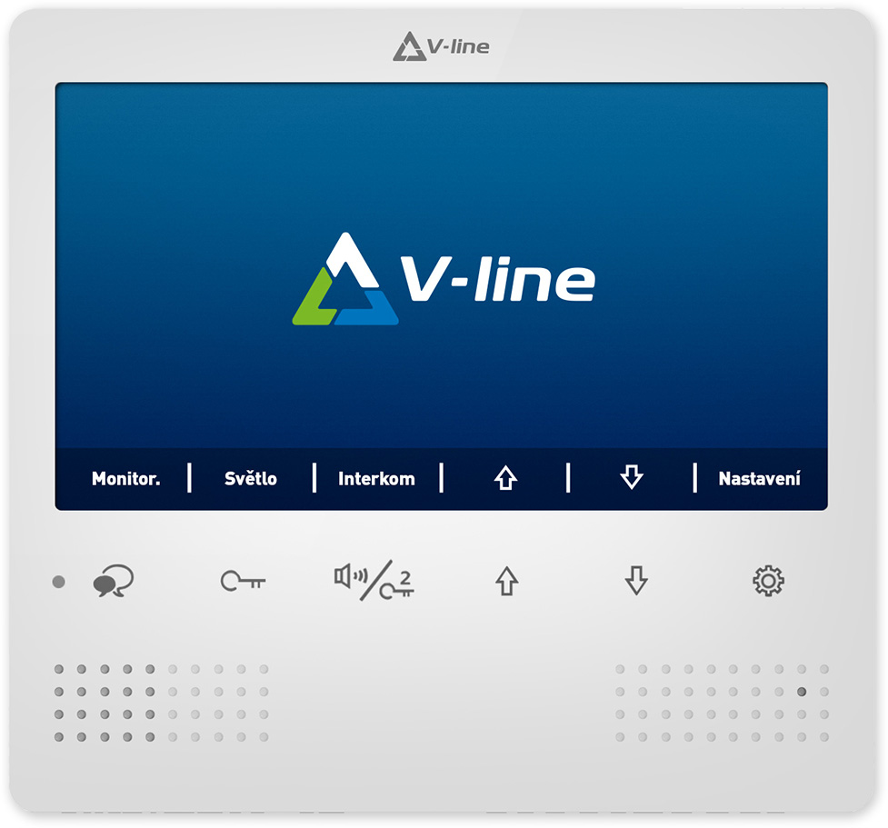 Vnitřní zobrazovací jednotka pro videotelefony řady V-LINE s barevným 7" LCD displejem, reproduktorem a mikrofonem. Je určena pro povrchovou montáž. Rozlišení 32 adres v systému a možnost připojení tlačítka zvonku od bytových dveří.