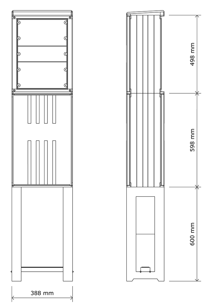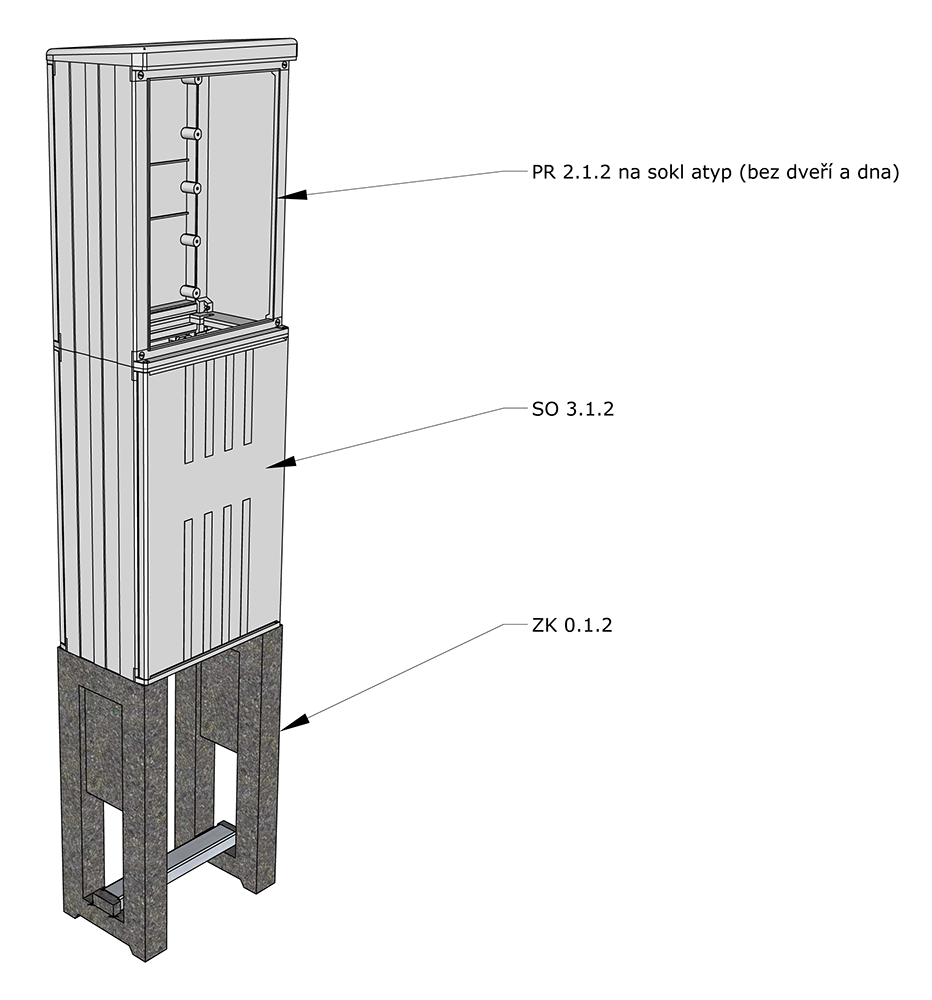 Plastový pilíř pro KTPO vč. ocelové krycí desky v barvě standartního trezoru (RAL 9007 struktura) a kotvící sady. Součástí dodávky není trezor, který je nutný vybrat dle specifikace systému a oblasti použití.