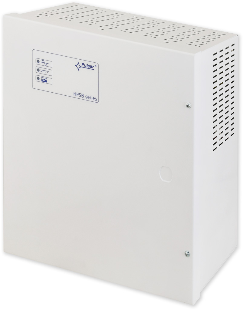 Pomocný zdroj v plechovém boxu s místem pro záložní akumulátor. Zdroj je v provedení AC/DC měniče, který se vyznačuje vysokou provozní odolností, vysokou účinností a minimálním ohřevem. Provedení je určeno pro použití v instalacích EZS, ale lze použít i v jiných případech, kde je potřeba zálohovaný zdroj 12 V =.
