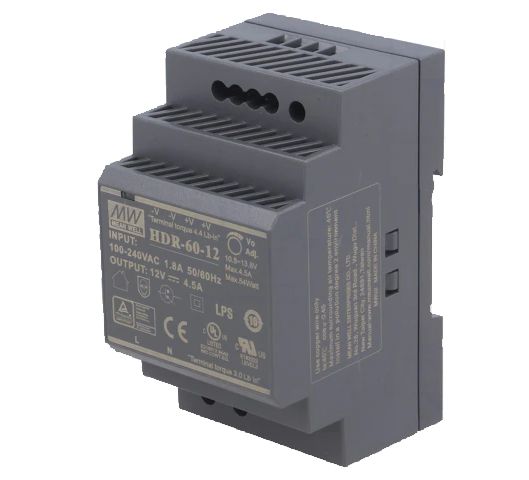 Napájecí zdroj na DIN (3 moduly), 12 V DC, 4,5A, 60W.