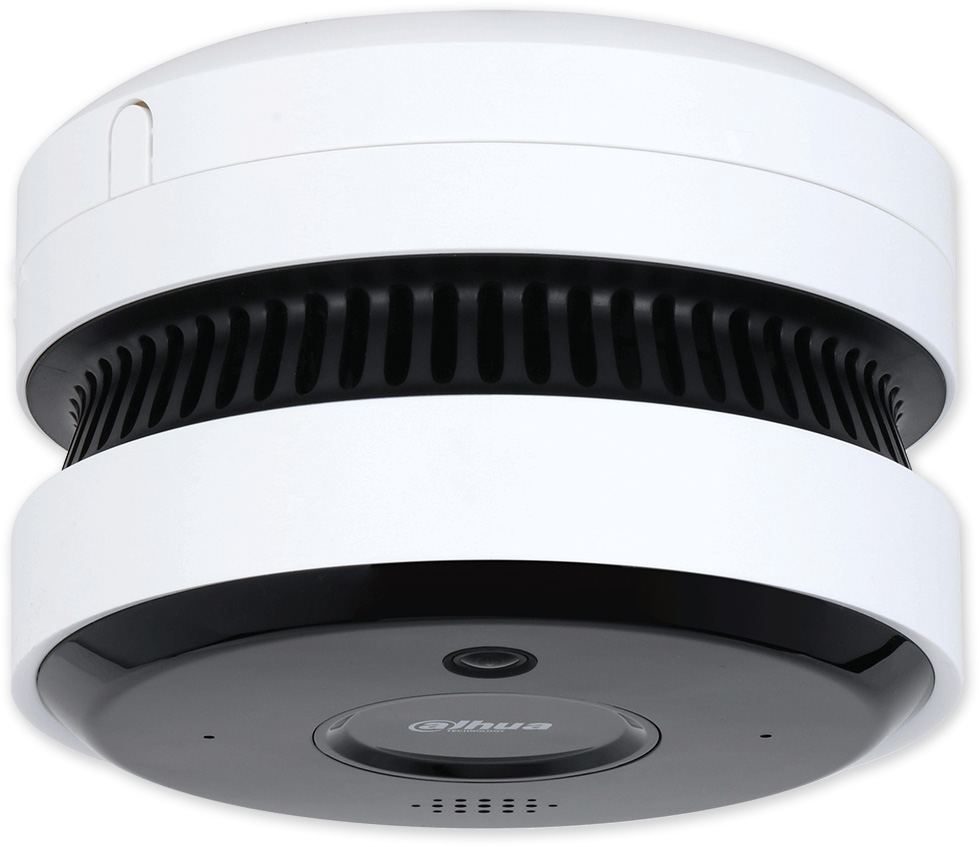 Opticko-kouřový požární detektor PoE napájení nebo 12VDC, vestavěná siréna LED signalizace. Optická detekce kouře je založena na principu vniknutí kouře do komory, která je prosvětlována IR diodou. Na přítomnost kouře reaguje detektor svitem LED diody, aktivace sirény. Doplněn vnitřní IP kamerou (úhel 144°), WDR. Inteligentní detekce požáru, kouře, SMD detekce pohybu, kategorizace, další detekce.