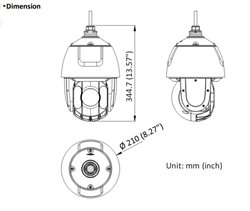 4 Mpx, venkovní PTZ dome kamera, H.265+, světelná citlivost 0.005 lux, WDR 120dB, ICR, adaptivní IR 150m, 25x optický zoom (4,8-120mm), 16x digitální zoom, horizontální úhel záběru: 55°-2,4°, technologie, zachycení obličeje - až 5 současně, detekce překročení linie, vstupu do oblasti, opuštění oblasti, zanechání zavazadla v oblasti, detekce odstranění předmětu, 300 presetů + 8 tras (max. 32 presetů na trasu), AUDIO IN/OUT - 1/1, ALARM IN/OUT - 2/1, slot na microSD/SDHC/SDXC kartu max. 256GB, konzole DS-1602ZJ v balení, bez napájecího zdroje, IP66, napájení 24VAC/Hi-PoE (max. 30W), rozměry: průměr 210 mm × 344.7 mm, hmotnost 3kg.