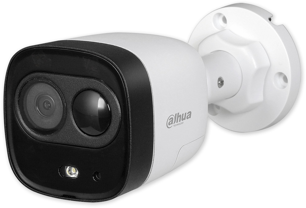Venkovní kompaktní kamera ze série Active Deterrence s aktivním zastrašováním. Integrovaný PIR detektor (10 m / 110°), bílé LED a siréna. Výstup ve formátech CVI, TVI, AHD, CVBS - přepnutí pomocí ovladače PFM820, fixní objektiv 2,8 mm (úhel 100°), mechanický IR filtr a přísvit 30 m. 2 Mpix rozlišení, dosah až 700 m po koaxiálním kabelu, kabel prochází středem držáku kamery.