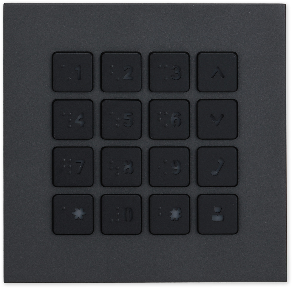 Rozšiřující dveřní modul s klávesnicí sloužící pro odemknutí dveří kódem nebo pro volání pomocí kódové volby. Modul je určen pro rozšíření hlavní dveřní jednotky VTO.
