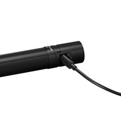 Svítilna je napájena moderním akumulátorem typu 21700 o vysoké kapacitě 5000 mAh, který lze v případě potřeby vyjmout. Baterie se nabíjí pomocí rychlého USB-C konektoru, který se nachází přímo na těle svítilny pod gumovou krytkou. Nabíjet lze pomocí PC, powerbanky, autoadaptéru nebo klasicky se sítě 220V, záleží na vašich momentálních možnostech. Při nabíjení 2A proudem je akumulátor plně nabitý za 3.5 hodiny. V nejnižším režimu výkonu dokáže plně nabitý akumulátor napájet svítilnu až 240 hodin. Na nízký režim (100 lm), který je pro běžné použití v přírodě plně dostačující, pak 19 hodin. Stav nabití akumulátoru lze ověřit pomocí indikační LED na těle svítilny.