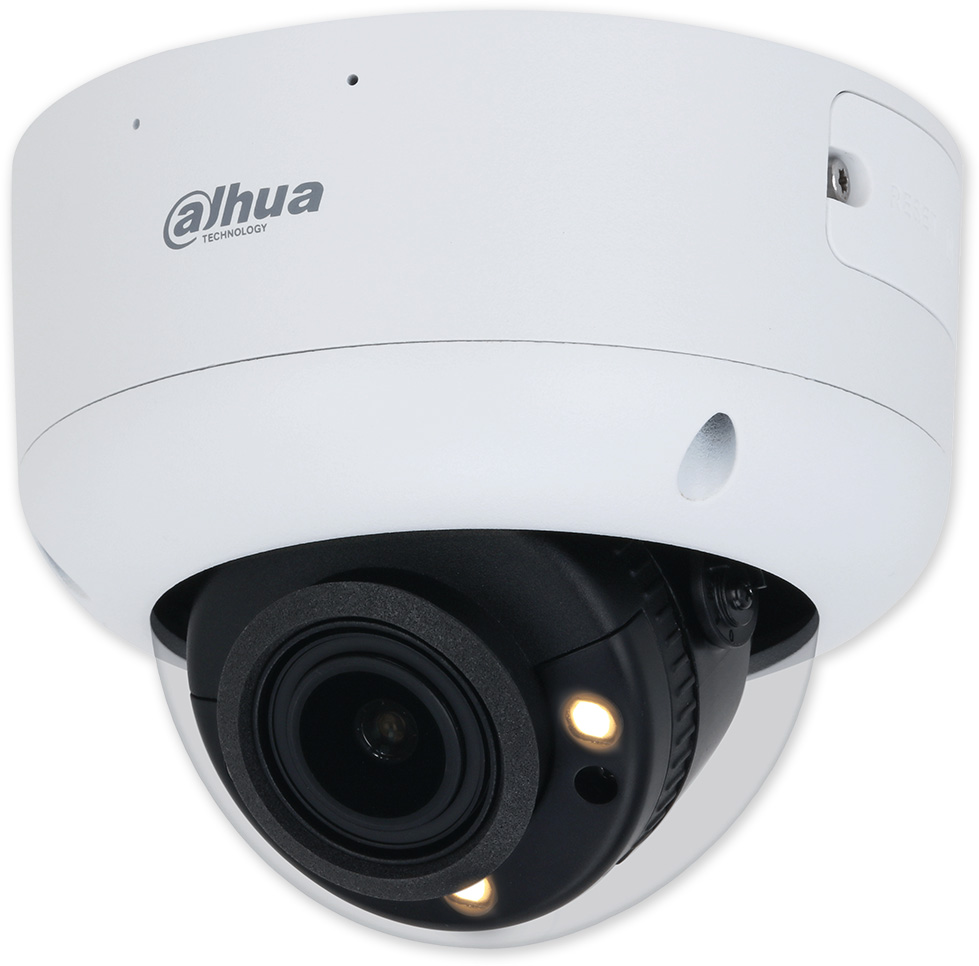 Venkovní dome antivandal IP kamera WizMind, technologie Starlight FullColor s velmi vysokou citlivostí snímače a barevný noční obraz, mikrofon. Objektiv 2,7-12 mm (115°-48°), bílé LED světlo pro rozšířené možnosti instalace. Tato řada nabízí AI umělou inteligenci a IVS pravidla: perimetr, rozpoznání osoby/vozidla, klasifikace, počítání osob, detekce tváře, heat mapy, opuštěný/ztracený objekt.