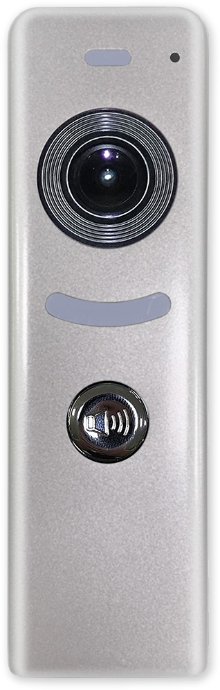 Venkovní dveřní jednotka s fisheye kamerou se 165° úhlem záběru. Obsahuje kameru, přisvícení, tlačítko zvonku, reproduktor, mikrofon a relé pro ovládání dveřního zámku.