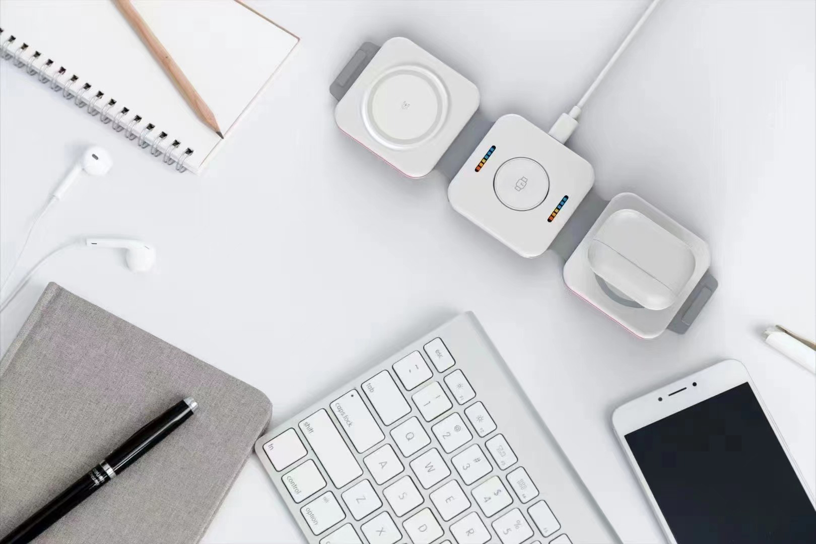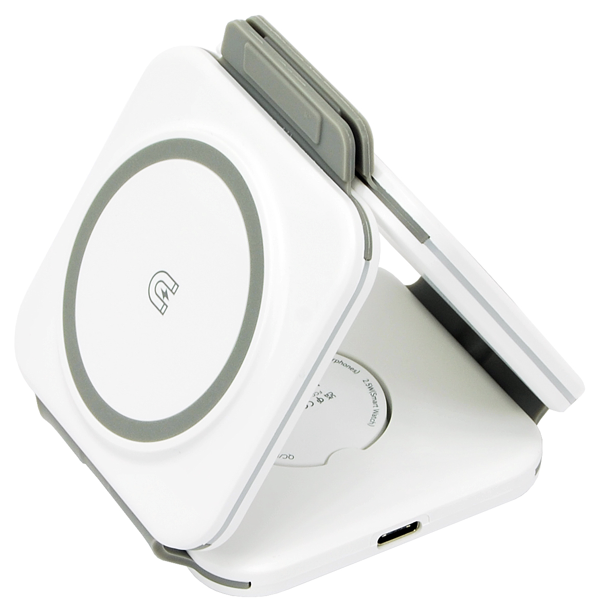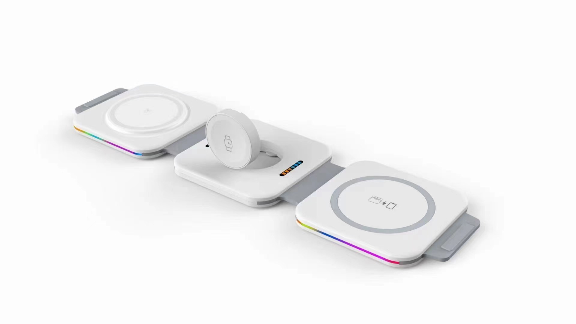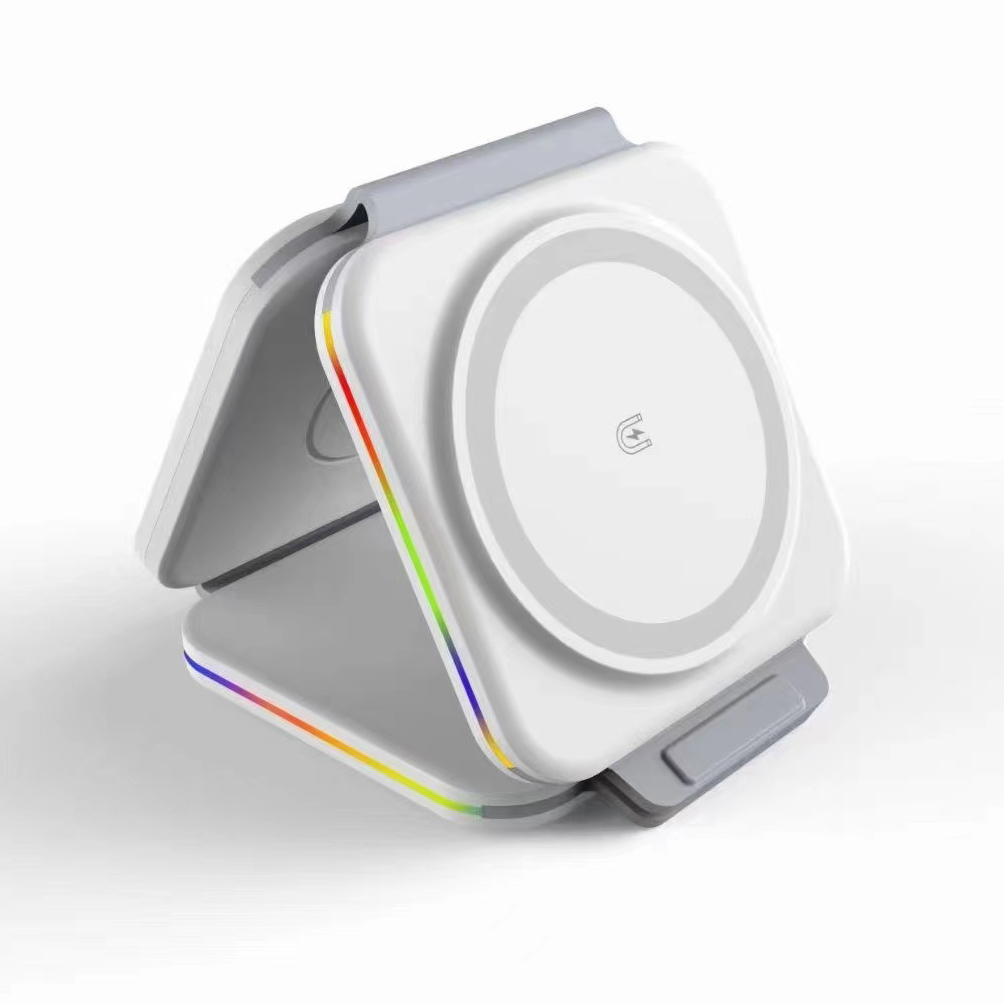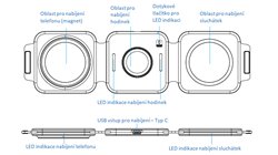 W1 Skládací bezdrátová nabíječka 3 in1 LED - bílá