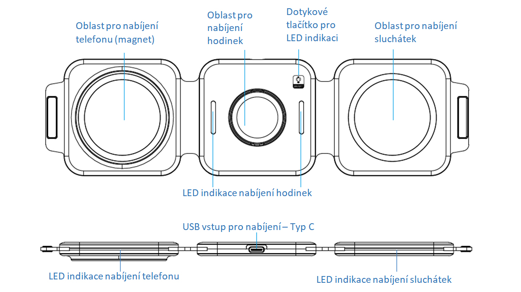 Bezdrátová skládací nabíječka CEL-TEC W1 3v1 LED ve tvaru podložky je vybavena chytrým čipem, který efektivně řídí nabíjení mobilního telefonu, chytrých hodinek a bezdrátových sluchátek. Nabíjení s tímto zařízením je efektivní a spolehlivé. Stačí pouze položit nabíjecí zařízení podporující Qi standard na podložku a můžete se těšit z tohoto snadného a pohodlného nabíjení, které bezdrátová technologie přináší. Vhodné především pro produkty Apple: iPhone, AirPods a iWatch