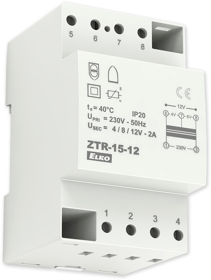 Univerzální napájecí zdroj se střídavým výstupním napětím (AC) 4 V, 8 V, 12 V v provedení na DIN lištu. Napájecí napětí 230 V AC.