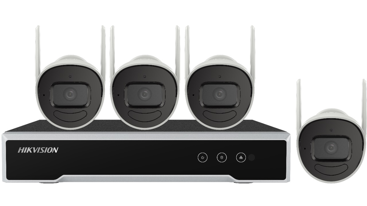 Set výrobků pro IP systém, skládající se ze 4 ks WiFi bullet kamer DS-2CV1021G1-IDW s rozlišením 2 Mpx, 1 ks NVR rekordéru DS-7104NI-K1/W/M/C 4CH s WiFi a 1x HDD 1TB, včetně napájecích zdrojů. Rozlišení kamer 1920 x 1080 px, citlivost 0.018 Lux, digitální WDR, objektiv f2.8 mm, napájení 12V DC/0,5A(napájecí zdroje jsou součástí dodávky), IR přísvit 30m, DUAL stream, integrovaný mikrofon, RJ45 konektor, WiFi 2.4 GHz IEEE 802.11b/g/n, rozměry kamer 175.6 × 73.0 × 89.1 mm, hmotnost 330g. NVR 4CH, 4x 1080p/25fps, RJ45 konektor 10/100M, datová propustnost 50 Mbps/40 Mbps, H265+,2x anténa, možnost vložení 1x HDD do kapacity 6TB, napájení 12V DC/12W (napájecí zdroj je součátní dodávky), 1x audio výstup, HDMI/VGA výstup s rozlišením 1920 x 1080px, rozměry NVR 265 x 225 x 48 mm, hmotnost 1,6 kg, součástí balení je UTP kabel 1m a HDMI kabel 2m. Kompletní balení tedy obsahuje 4 WiFi kamery včetně 4 ks napájecích zdrojů, NVR rekordér s nainstalovaným 1TB HDD + napájecí zdroj, HDMI a UTP kabel.