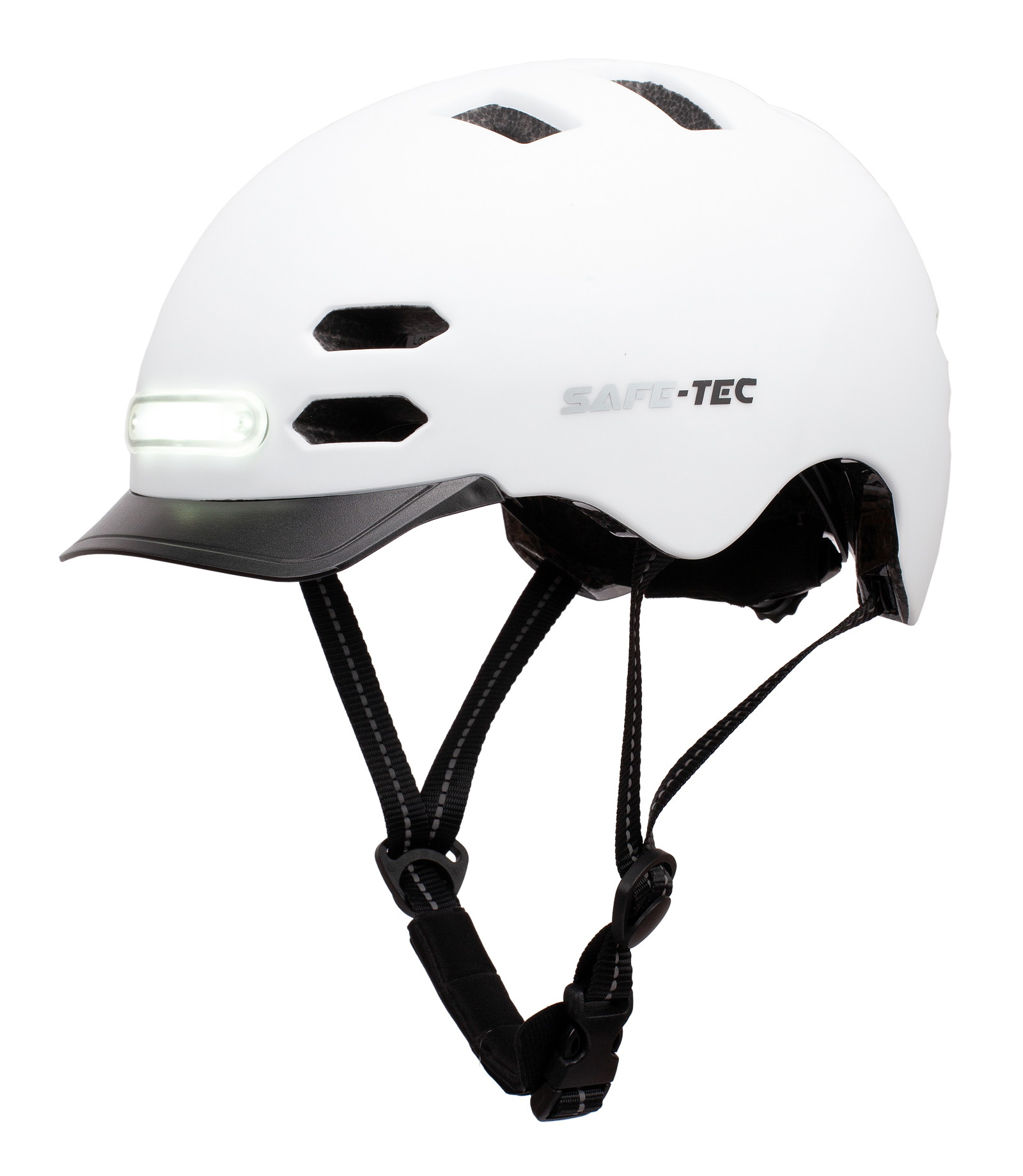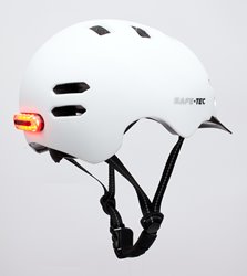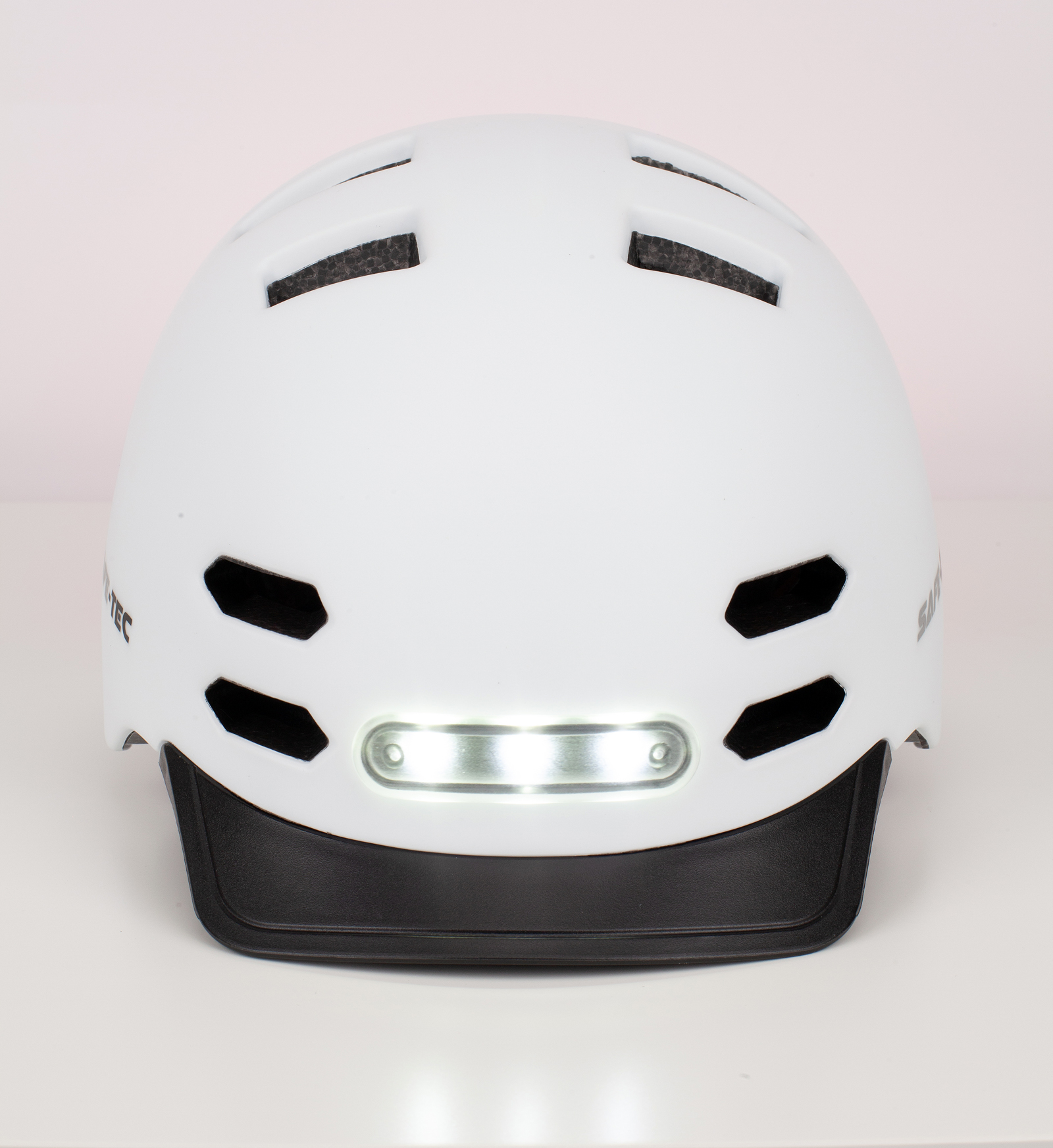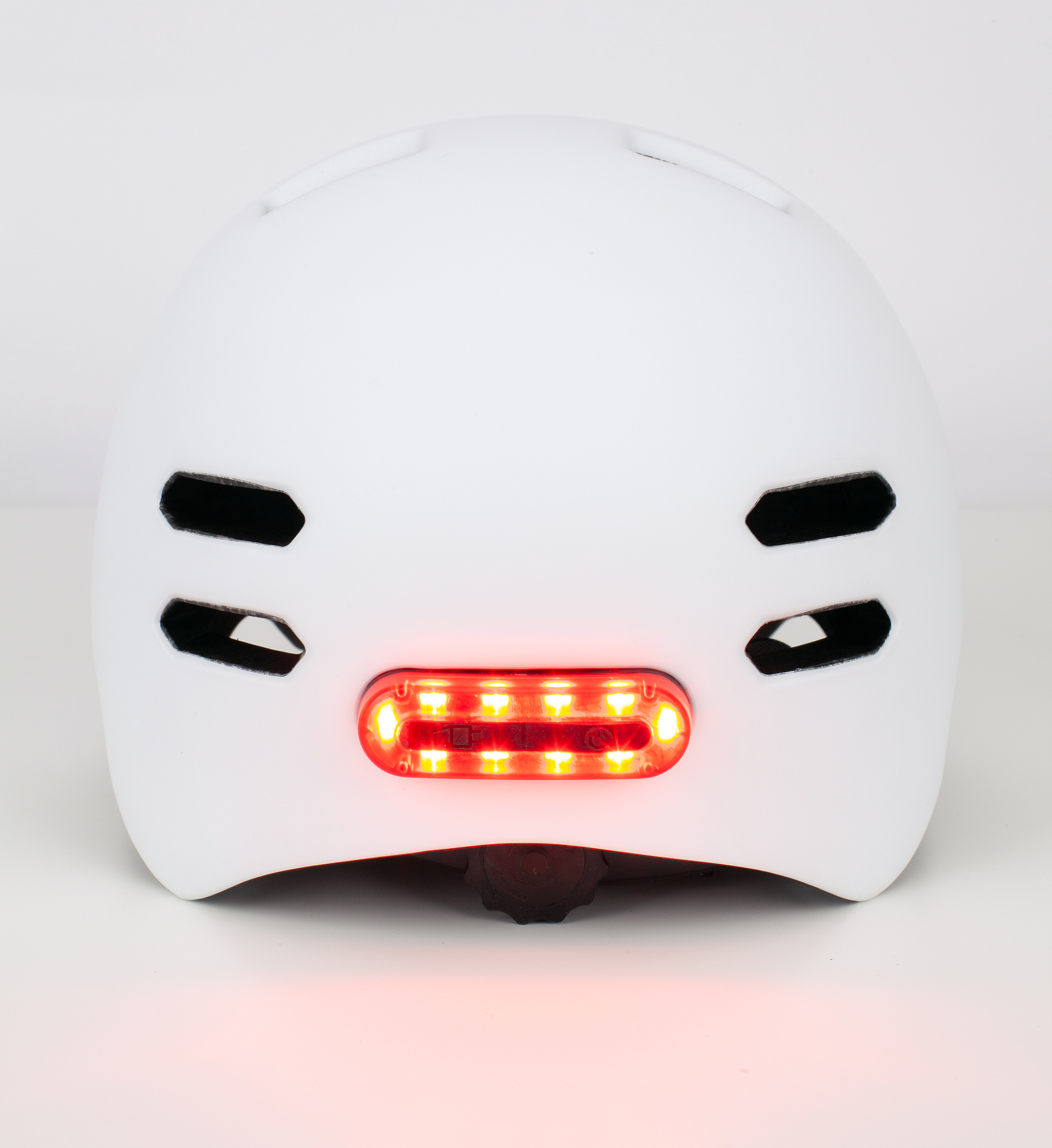 Městská helma s přední a zadní LED světelnou signalizací na kolo, koloběžku, skate, inline brusle apod. Světla jsou ovládána spínačem na zadní straně přilby a můžou buď trvale svítit nebo blikat.