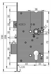 Vchodový zadlabací elektromechanický zámek s akustickou signalizací se třemi mikrospínači-zarážka, závora a klika pro všechny interiérové i venkovní dveře s uzamčením bez klíčů. Rozměry zámku umožňují nahradit již dosluhující zámky bez dodatečných úprav. Bez panikové funkce-elektrické ovládání obou klik. S funkcí samozamykání, nejužší 15 mm zámek na trhu.