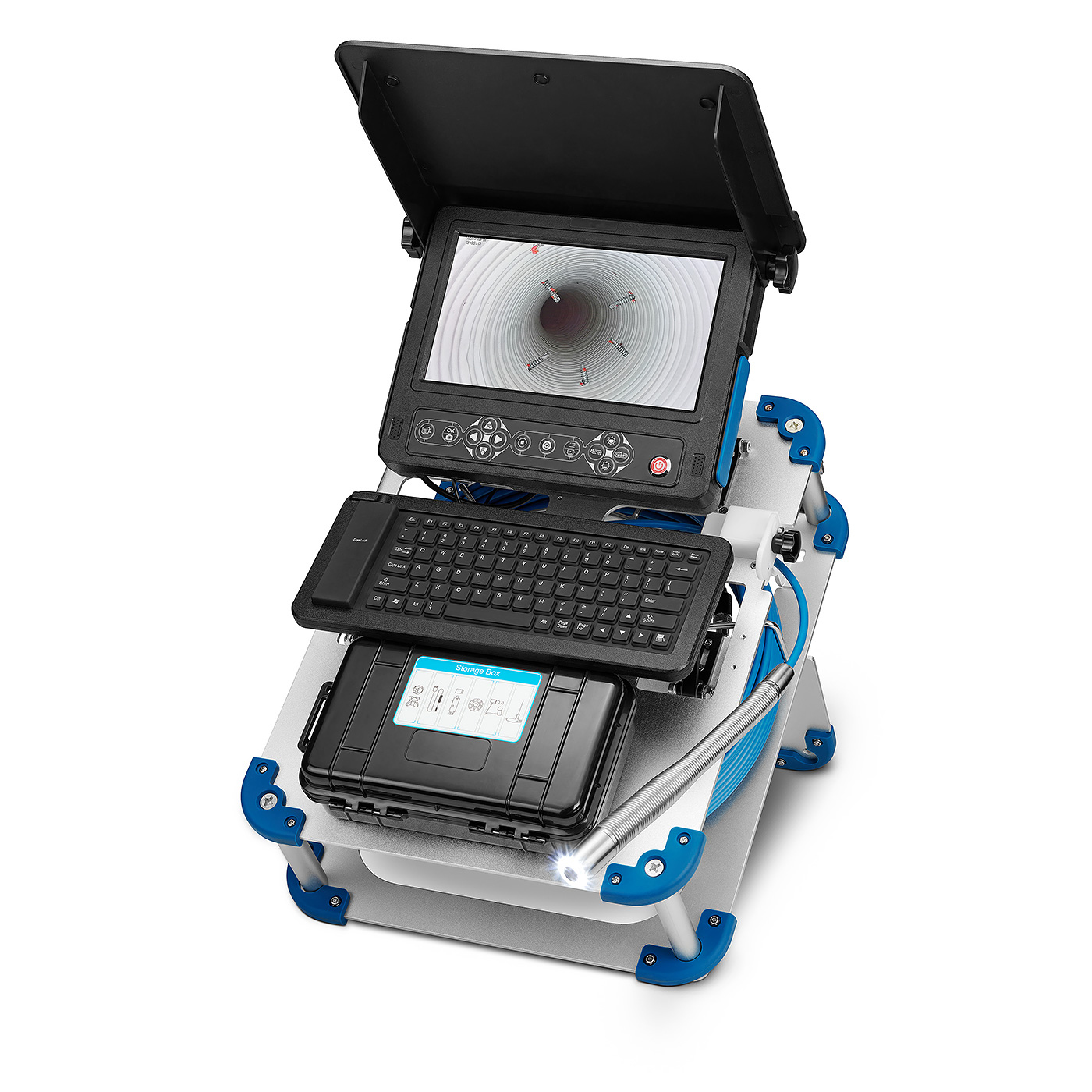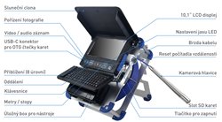 Kamera je navíc vybavena vysílačem 512 Hz, který umožňuje přesné vyhledání polohy kamery v potrubí.