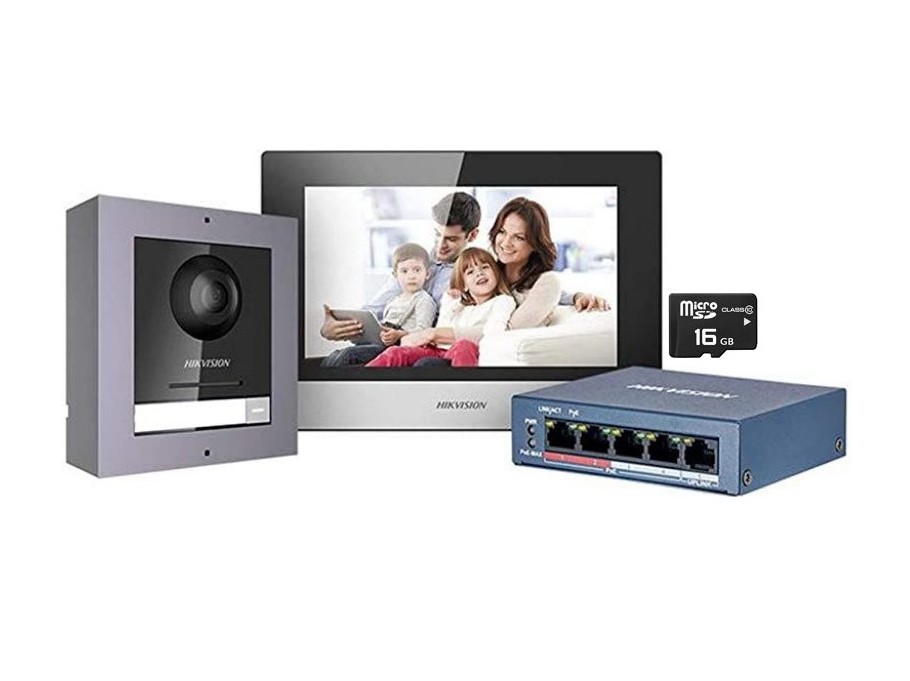 Sada videotelefonu; IP systém 2. generace; sada je složena z videotelefonu DS-KH6320-WTE, dveřní stanice DS-KD8003-IME1/Surface, switche s 4 PoE a 16GB SD karty. Videotelefon má obrazovku 7" s rozlišením 1024/600 dpi; dveřní stanice má hliníkový čelní panel; kamerový modul má rozlišení 2Mpx; dva výstupní kontakty + trvalý 12Vdc výstup/2A; sada umožňuje sdílení video hovoru s mobilní aplikací HIK-CONNECT pro smartphone/tablet.Pozor - u verze FW_DS-KD8003-IMEI1(2)_V2.2.50_210728_CZ a novější, již nelze downgrade na starší verzi FW !!! Nová verze FW přináší zabezpečení Security 2.0, možnost 4-místného kódu při použití přídavného modulu klávesnice DS-KD-KP, zadání až 16 uživatelských kódů(původně pouze 3) a další drobná vylepšení.