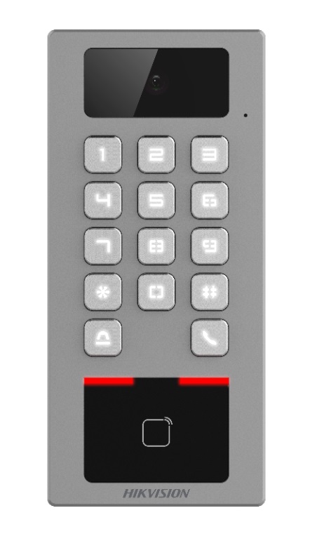 Vstupní IP interkom/videoterminál s RFID čtečkou čipů/karet Mifare a DESfre, ovládání přes mobilní aplikaci Hik-Connect, možnost volání na vnitřní videomonitor Hikvision, 2Mpx kamera, horizontální úhel záběru 110°, vertikální úhel záběru 81°, vestavěná RFID čtečka pro čipy a karty Mifare/DESfre ,otevírání číselným kódem, doporučená montážní výška 1,4m, maximální vzdálenost čtení karet/čipů: 3cm, počet uložených karet/čipů: 100 000, paměť na 300 000 událostí, komunikace přes RJ-45 10/100Mbps, Wi-Fi 2,4 GHz, Bluetooth(pouze příprava do budoucna), 1x RS-485, 1x Wiegand výstup, 1x slot na paměťovou kartu micro SD, 1x tamper, 1x lock, 1x odchodové tlačítko, 1x výstupní kontakt na zámek, ALARM IN/OUT - 1/1, venkovní krytí: IP65, montáž na stěnu nebo na stojan, provozní teplota: -40°C až 70°C, napájení: 12 V DC / 1 A(napájecí zdroj není součástí dodávky), krytí IP65, rozměry: 177 x 81 x 24mm.