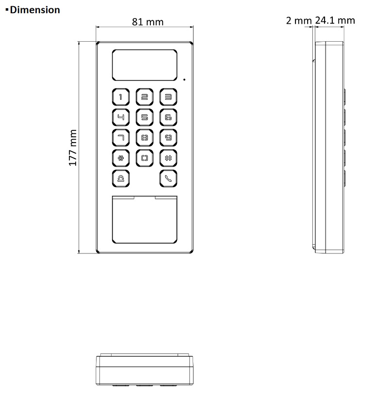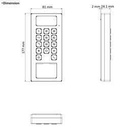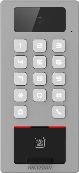 Vstupní IP interkom/videoterminál s RFID čtečkou čipů/karet Mifare a DESfre, čtečka otisku prstů, ovládání přes mobilní aplikaci Hik-Connect, možnost volání na vnitřní videomonitor Hikvision, operační systém: Embedded Linux System, 2Mpx kamera, horizontální úhel záběru 110°, vertikální úhel záběru 81°, vestavěná RFID čtečka pro čipy a karty Mifare/DESfre , vestavěná čtečka otisků prstů, doporučená montážní výška 1,4m, maximální vzdálenost čtení karet/čipů: 3cm, počet uložených karet/čipů: 100 000, počet uložených otisků prstů: 10 000, paměť na 300 000 událostí, komunikace přes RJ-45 10/100Mbps, Wi-Fi 2,4 GHz, Bluetooth(pouze příprava do budoucna), 1x RS-485, 1x Wiegand výstup, 1x slot na paměťovou kartu micro SD, 1x tamper, 1x lock, 1x odchodové tlačítko, 1x výstupní kontakt na zámek, ALARM IN/OUT - 1/1, venkovní krytí: IP65, montáž na stěnu nebo na stojan, provozní teplota: -40°C až 70°C, napájení: 12 V DC / 1 A(napájecí zdroj není součástí dodávky), krytí IP65, rozměry: 177 x 81 x 24mm.