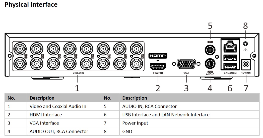 16x BNC VIDEO vstup - HD-TVI, analog, AHD a HD-CVI