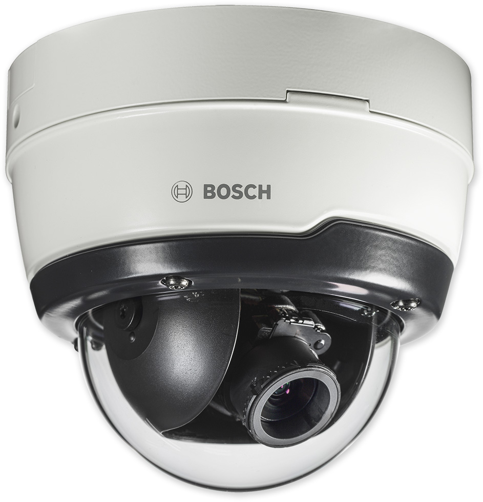 Robustní venkovní antivandal dome IP kamera řady FLEXIDOME IP 5000i IR s motorickým objektivem 3,0-10 mm (úhel 99°-31°). Rozlišení 5 Mpix. Základní analýza videa EVA (Essential Video Analytics). Poplachový vstup a výstup, audio, slot pro SD kartu, napájení PoE nebo 12 VDC/24VAC. Otáčení ve třech osách.