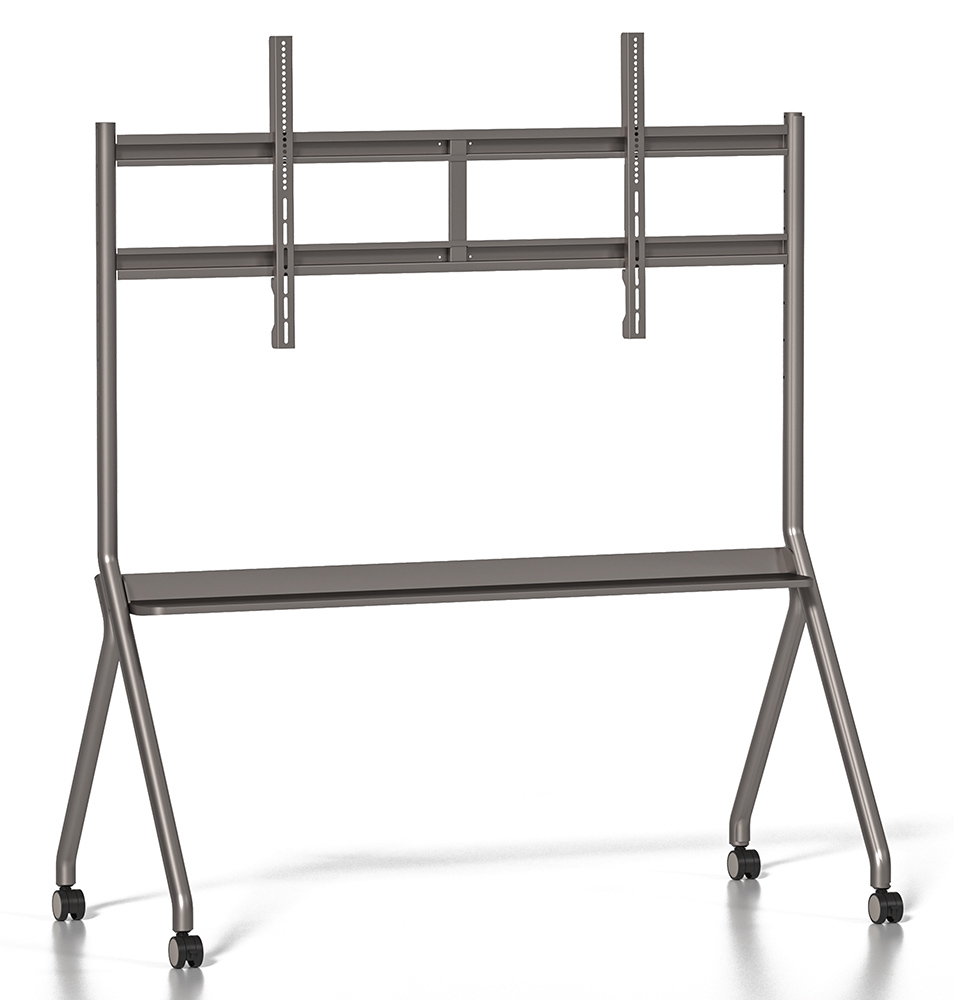Stojanový držák pro interaktivní dotykový monitor LCD o velikosti 86" až 98". Hmotnost 31 kg, nosnost 200 kg, kov, kolečka, lišta.