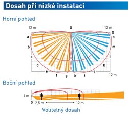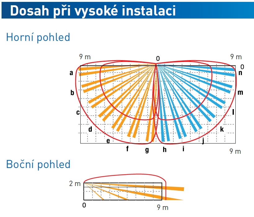 Pokrytí: 2x 9m, 180°