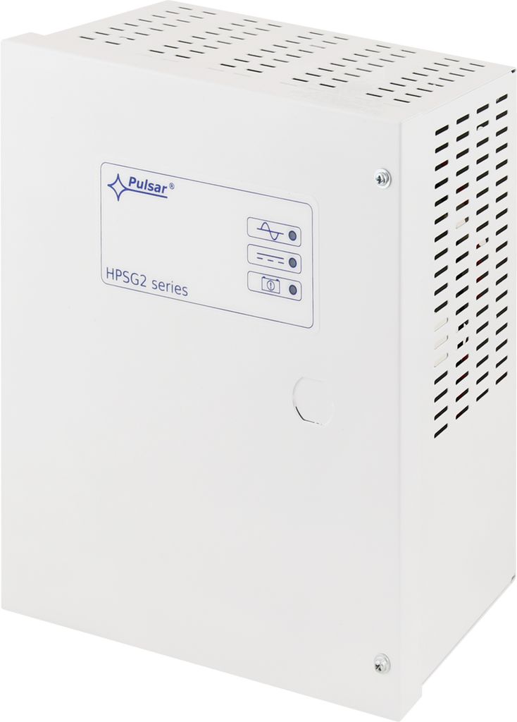 Pomocný zdroj v plechovém boxu s místem pro záložní akumulátor. Zdroj je v provedení AC/DC měniče, který se vyznačuje vysokou provozní odolností, vysokou účinností a minimálním ohřevem. Provedení je určeno pro použití v instalacích EZS, ale lze použít i v jiných případech, kde je potřeba zálohovaný zdroj 12 V =. Zdroj má výstup poruchy AC a baterie.