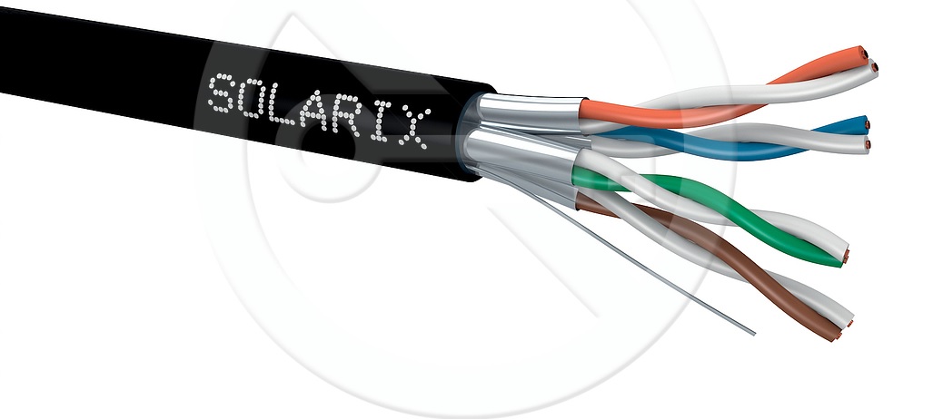 Instalační kabel Solarix s označením SXKD-6A-STP-PE je jvysoce kvalitní stíněný kabel kategorie 6A, který je určený pro provoz vysokorychlostních ethernetových protokolů, včetně 10GBASE-T. Konstrukce kabelu je U/FTP, typ pláště UV stabilní PE s třídou reakce na oheň Fca a stupněm krytí IP67. Vodiče kabelu jsou vyrobeny z kvalitního měděného drátu s čistotou mědi 99,97%. Kabel bez problémů splňuje požadavky z mezinárodních standardů ISO/IEC 11801, EN 50173 a ANSI/TIA 568.2-D.