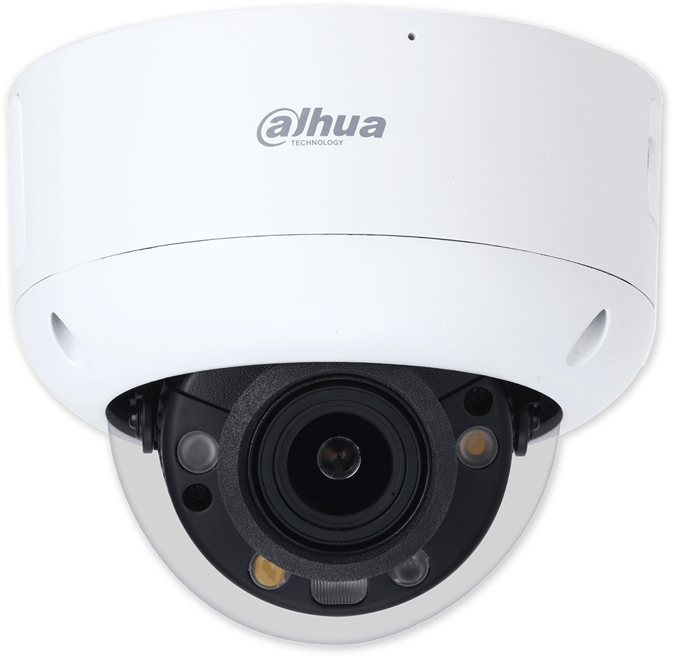 Venkovní antivandal IP dome kamera kombinující černobílý i barevný noční obraz a aktivní zastrašení audio sirénou s dvojicí výstražných LED (červená a modrá). Tato kamera používá v nočním černobílém režimu standardní IR světlo. Když umělá inteligence detekuje v prostoru před kamerou člověka, aktivuje bílé LED světlo, spustí audio vizuální zastrašení a přepne do barevného obrazu.