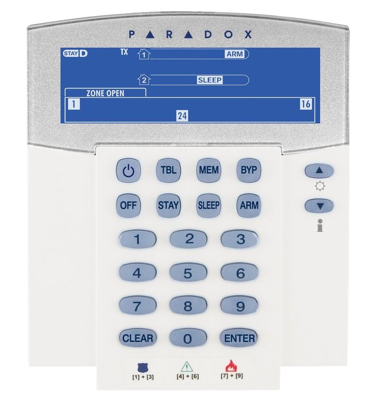 Bezdrátová ICON klávesnice s displejem k sytémům SPECTRA SP a MAGELLAN, která umožňuje zobrazování všech 32 zón a základních informací o stavu ústředny pomocí jednoduchých a výstižných ikon a číslic. Pomocí ICON klávesnice nelze prohlížet historii událostí ústředny.