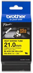 Originální tepelně smršťovací trubička Brother HSe-651E o šířce 21 mm je určena speciálně pro trvalé značení a identifikaci kabelů a vodičů. Při smršťovacím poměru 3:1 se doporučuje použití HSe-651E s černým tiskem na žlutém podkladu pro kabely o průměru od 4,2 mm do 13,5 mm. Kompatibilní s tiskárnami štítků P-touch, které mají logo HS nebo HSe na krytu kazety s páskou.