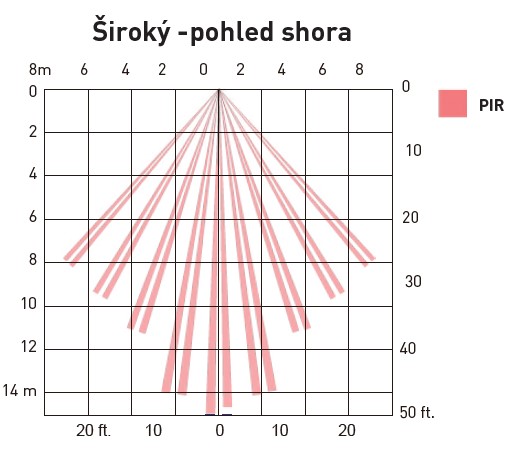 PIR, IR-AM, spodní vidění, dosah 15 m 85°/ 24 m 5°, (PET)