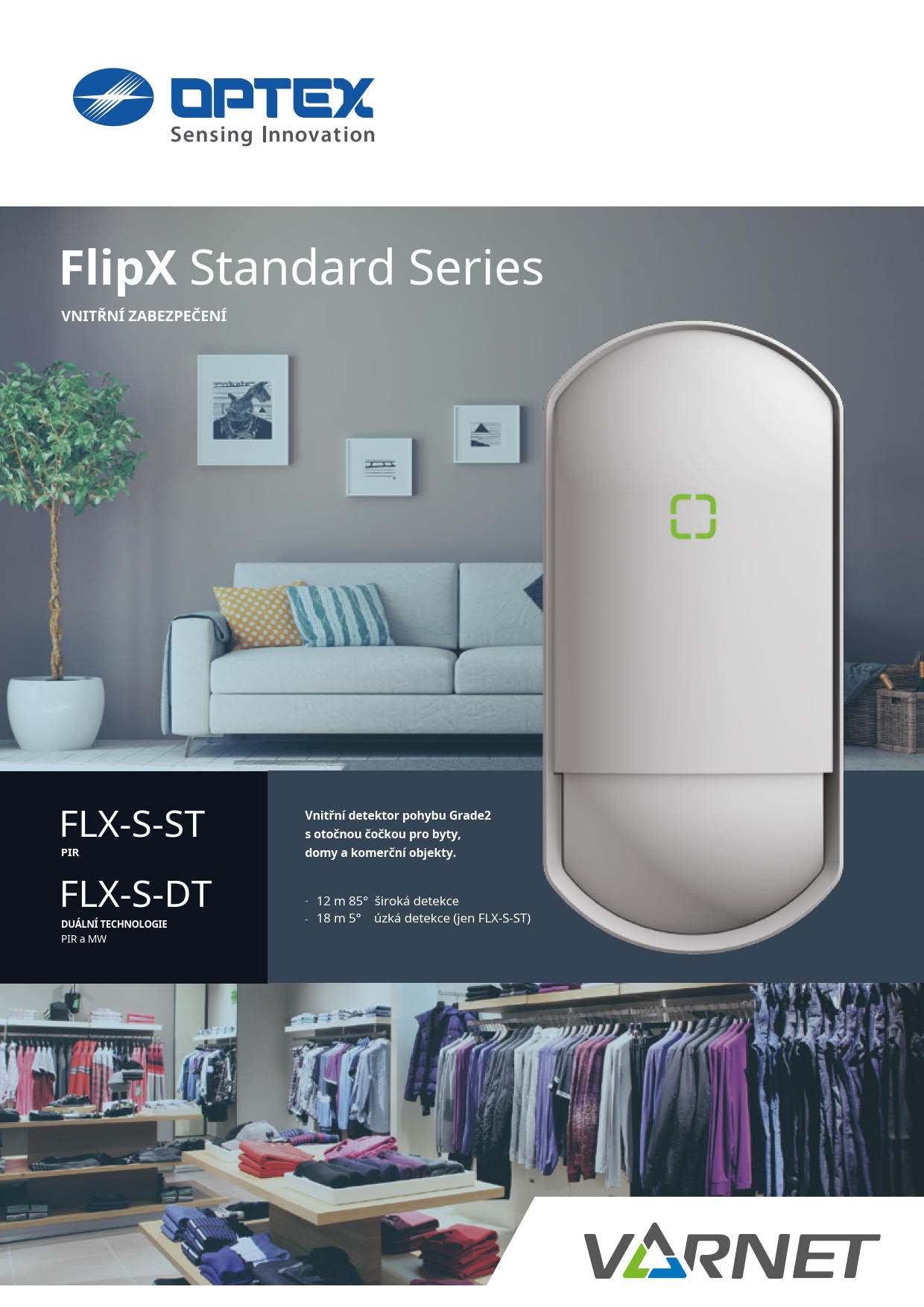 Digitální detektor do vnitřního prostředí. Kombinace detekce PIR a MW zvyšuje odolnost proti falešným poplachům způsobených sluncem nebo jinými tepelnými zdroji. Detektor používá pro PIR část algoritmy pro eliminaci ostrého slunečního světla a teplotní kompenzaci. Citlivost PIR lze nastavit ve třech úrovních, MW část ve dvou. Rozsah instalace 2 – 3 m umožňuje umístění detektoru pod stropem i u místností s vyššími stropy.