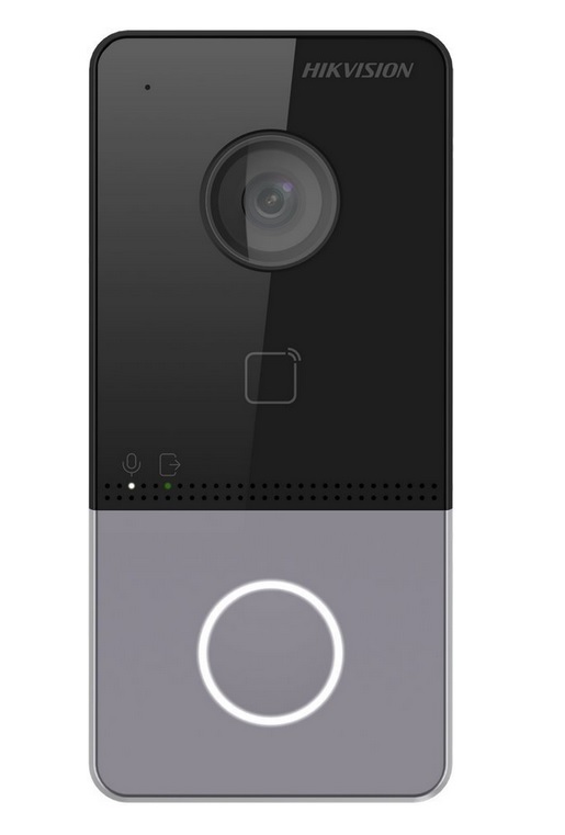 Dveřní IP stanice s kamerou a 1-tlačítkem, IP systém videotelefonů Hikvision 2. generace, plastové provedení, povrchová instalace, umožňuje přímé volání na mobilní telefon prostřednictvím cloudové služby od Hikvisionu a mobilní aplikace Hik-Connect, kamera má funkci WDR a rozlišení 2 Mpx (1920x1080), horizontální úhel záběru 131°, vertikální úhel záběru 78°, rozhraní LAN 10/100 Mbps a WiFi, kapacita karet/čipů max 2000, 1x RS485, 1x odchodové tlačítko, 4x alarm IN, RFID čtečka čipů/karet Mifare (13,56MHz), 1x NO/NC kontakt pro zámek(pro napájení zámku nutné použít externí napájecí zdroj), napájení 12V DC nebo standardní PoE IEEE802.3af, IP65, provozní teplota -40°C až +55°C, rozměry: 138 x 65 x 27 mm, hmotnost 265g.