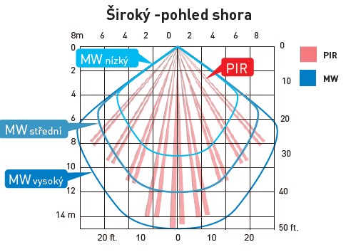 PIR+MW, IR-AM, spodní vidění, dosah 15 m / 85°, (PET)