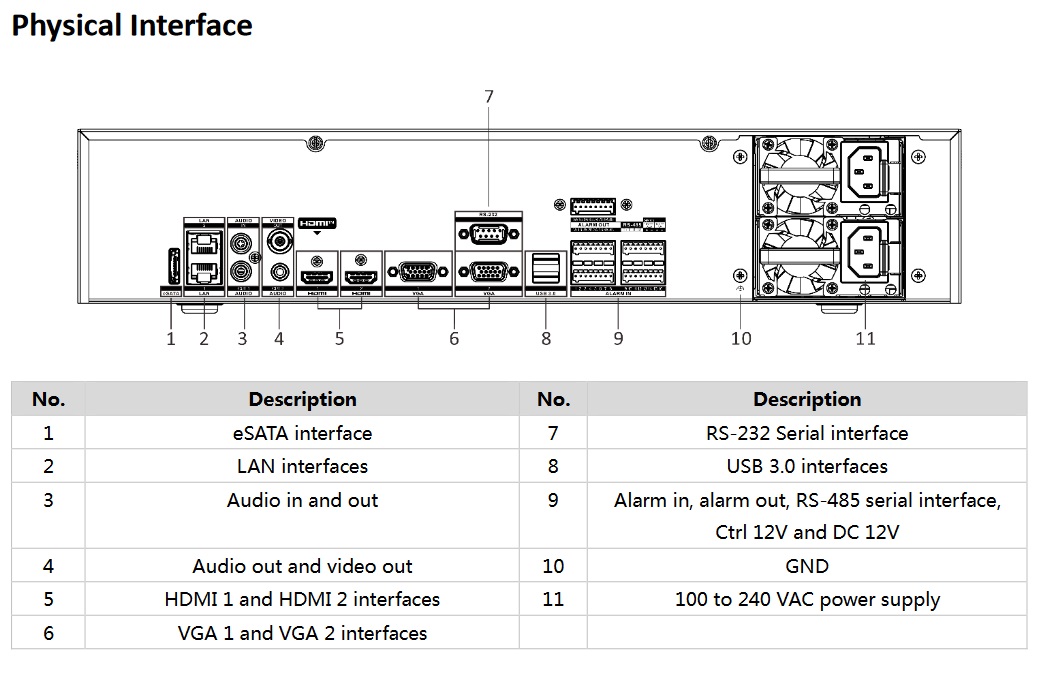 5x video výstupy: 2x HDMI výstup(1x8K + 1x4K), 2x VGA výstupy(1920x1080), 1x CVBS
