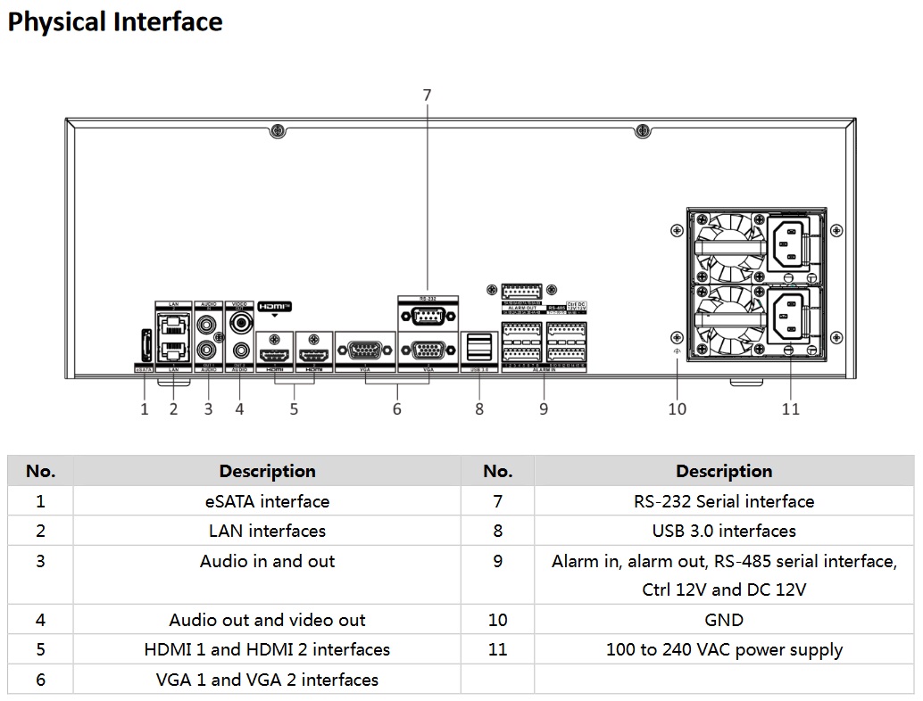 5x video výstupy: 2x HDMI výstup(1x8K + 1x4K), 2x VGA výstupy(1920x1080), 1x CVBS