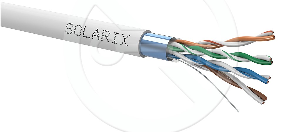 Instalační kabel Solarix s označením SXKD-5E-FTP-PVC je spolehlivý stíněný kabel kategorie 5E, který je určený pro provoz ethernetových protokolů, včetně 2.5GBASE-T a 5GBASE-T*. Konstrukce kabelu je F/UTP, typ pláště PVC s třídou reakce na oheň Eca. Vodiče kabelu jsou vyrobeny z kvalitního měděného drátu s čistotou mědi 99,97%. Kabel bez problémů splňuje požadavky z mezinárodních standardů ISO/IEC 11801, EN 50173 a ANSI/TIA 568.2-D.