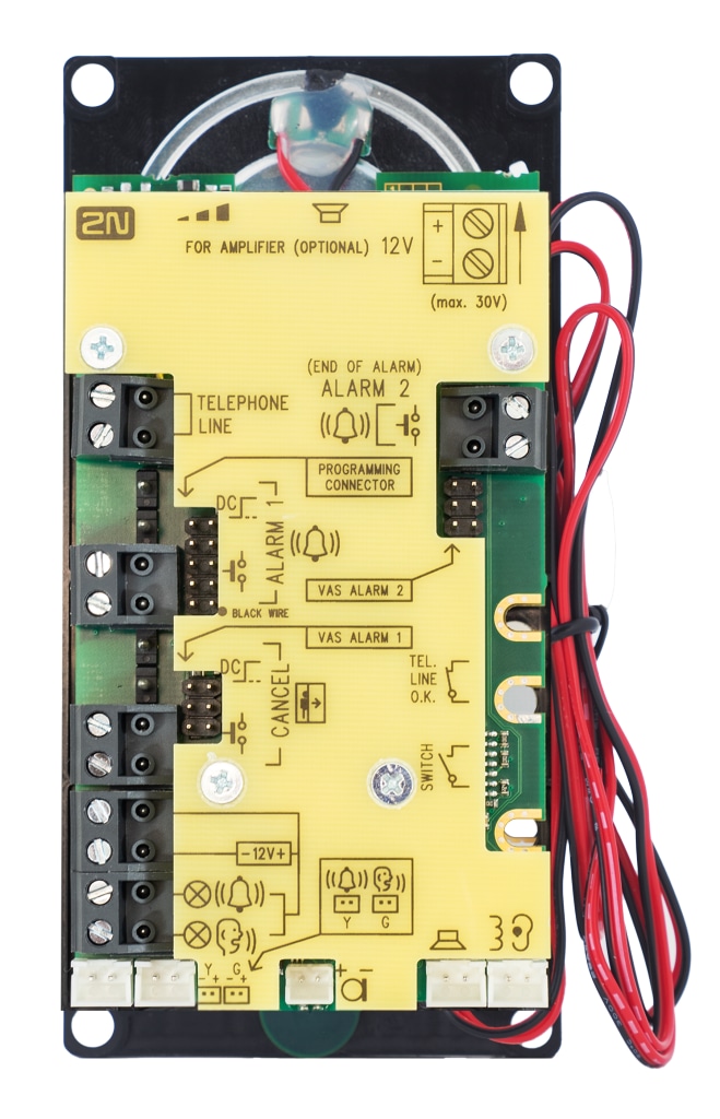 2N® Lift1 je principiálně hlasitý telefon. To znamená, že k oboustranné komunikaci slouží mikrofon a reproduktor vestavěný za panelem (tablem) výtahu.