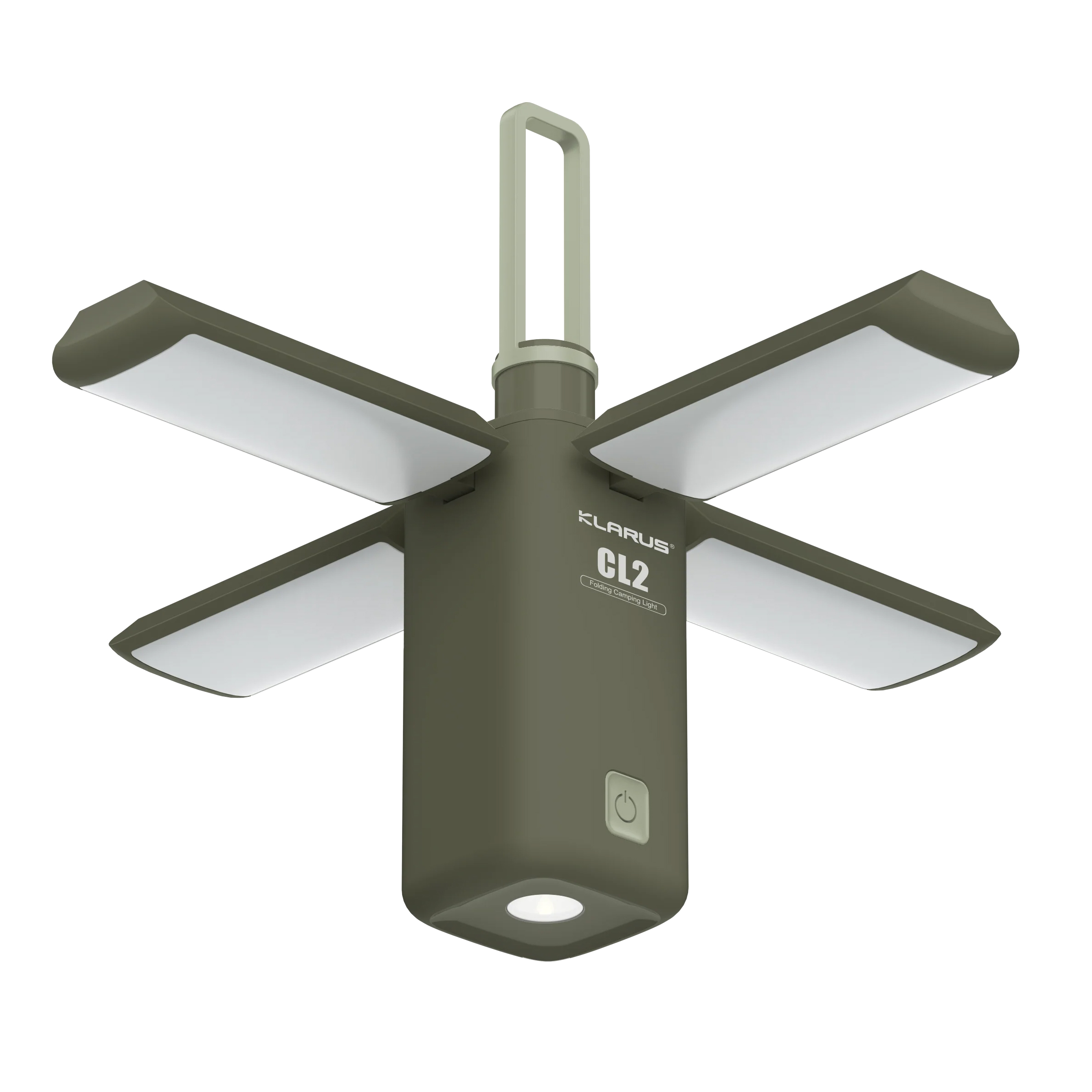 Skládací kempingová svítilna je vybavena 4 LED panely o maximální světelném výkonu 750 lumenů, které jsou samostatně polohovatelné až o 90°, díky čemuž lze libovolně měnit směr osvětlení a tím se vyhnout nepříjemnému oslnění nebo rušení okolí. Díky variabilitě rozkládání a praktickému držadlu lze svítilnu jednoduše zavěsit ve stanu nebo třeba umístit na stůl.