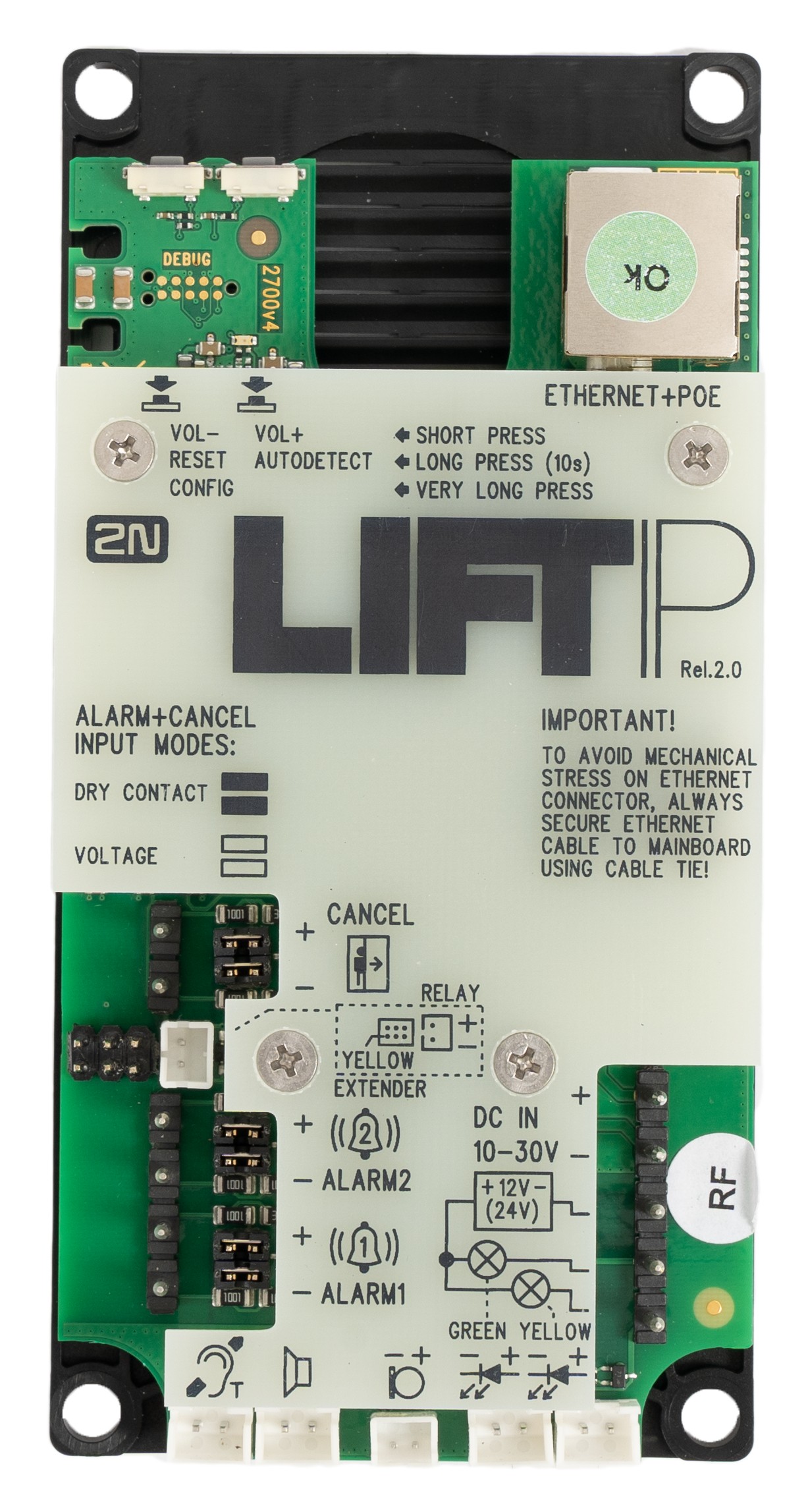2N® LiftIP 2.0 je unikátní nouzový IP komunikátor využívající technologii VoIP pro přenos hovorů z kabiny výtahu do call centra nebo na recepci či velín. IP technologie umožňuje servisní firmě mít komunikátor pod stálým dohledem, spravovat jej na dálku a využívat možnosti automatické konfigurace ve formě předdefinovaných konfiguračních šablon. 2N® LiftIP 2.0 je možné napájet přes PoE (Power over Ethernet).